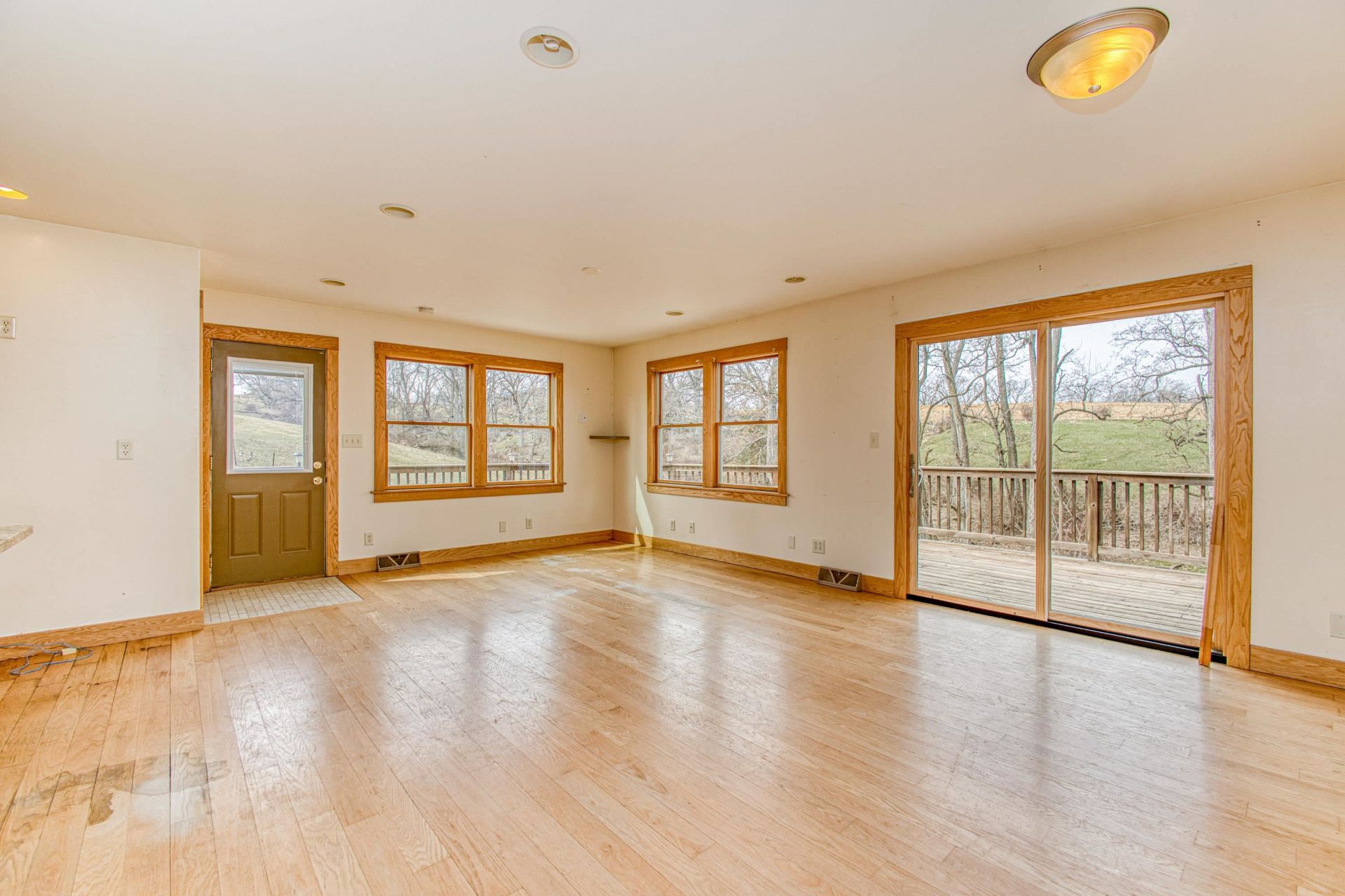Country living with space to spread out Welcome to 13800 W Valley Rd East Dubuque IL a 4 bedroom, 3 bath home offering over 2500 square feet on 2 private acres in the desirable Menominee area This cement board siding home features an open-concept remodeled kitchen and living area pantry gorgeous wood floors throughout the main level and peaceful countryside views from the back deck The main floor offers a spacious primary suite with attached bath two additional bedrooms full guest bath, and convenient main floor laundry Downstairs you'll find even more living space with an additional bedroom office/flex room full bath and family room A deep 2 car attached garage completes the package Privacy space and updates all in one incredible property